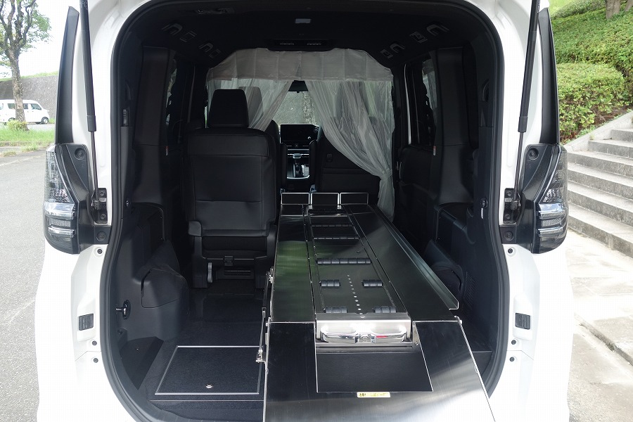 搭載しております。棺台躯体は2,000㎜ありますが、90系のノアヴォクシーは安全装置の関係で室内が以前の車両より