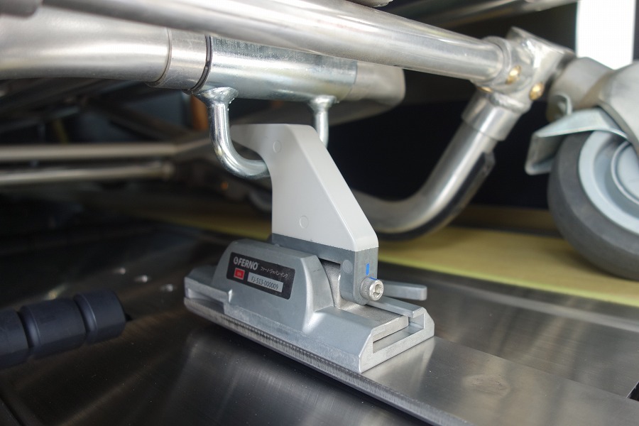 搬送車としても使用しやすいように収納BOXを製作しさらにはストレッチャー固定用の専用器具ファスナーも