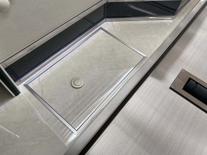 棺台の左右湯灌に収納を作成し車両の利便性を向上させております。